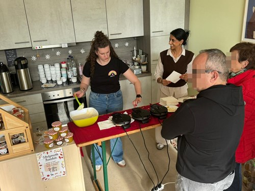 Für das leibliche Wohl war ebenfalls gesorgt – frische Waffeln mit Sahne und Kaffee standen bereit, und wer Lust hatte, konnte selbst gemachte Marmelade erwerben. Diese haben die Kinder Tage vorher mit den Erziehern und Erzieherinnen zubereitet.
