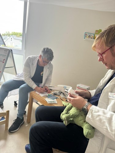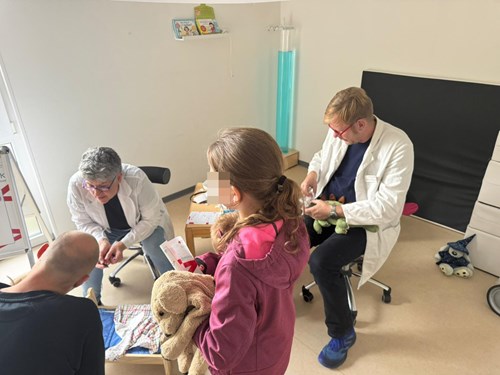 Ein besonderes Angebot war die Teddyklinik. Kinder durften ihre kranken oder verletzten Kuscheltiere mitbringen und wurden von unseren Teddyärztinnen und -ärzten liebevoll betreut und untersucht. Eine schöne Möglichkeit, spielerisch über Pflege, Fürsorge und Gesundheit zu sprechen.