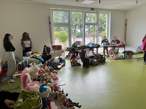 In der Turnhalle wurde vom Elternbeirat ein Basar organisiert und durchgeführt. Dort hatten mehrere Kita-Familien die Möglichkeit gebrauchte Kleidung oder Spielzeuge zu verkaufen.