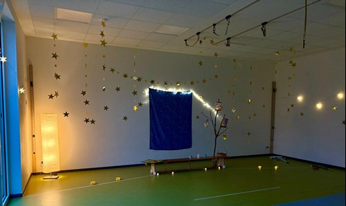 Am Dienstag war für die Kinder ein Entspannungstag geplant. Mit verschiedenen Yoga-Übungen, Decken und Kissen wurde den Kindern die Möglichkeit gegeben, sich Höhlen und kleine Festungen zu bauen, um sich mal richtig zu entspannen. Zusätzlich durften auch Unterwasser-Kronen mit Glitzer, Stickern und Fingerfarben gebastelt werden.
