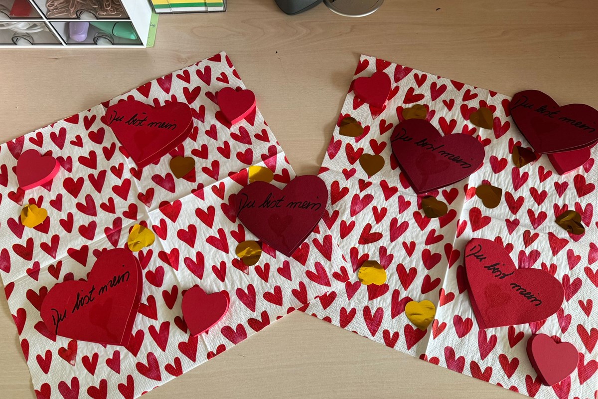 Im Anschluss erhielt jede Besucherin und jeder Besucher ein selbst gebasteltes Herz, das die Kinder mit großer Sorgfalt vorbereitet hatten. Eine kleine Erinnerung, die zeigt, wie wichtig dieser Mensch für sie sind.